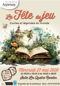 La ludothèque d’Aizenay organise sa fête du jeu le mercredi 27 mai 2026, à la salle des quatre rondes. Il s’agit d’un évènement gratuit et ouvert à tous pour promouvoir le jeu sous toutes ses formes et pour tous les âges.