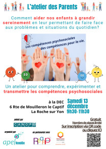 L’Atelier des Parents , pour comprendre, expérimenter et transmettre les compétences psychosociales.