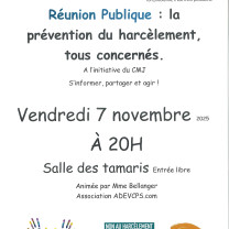 road_vous_etes_ici Accueil Agenda Agenda Vous avez un événement destiné aux parents ? Postez-le sur notre site Poster un événement Les champs marqués d’un astérisque sont obligatoires. Âge 0-6 ans 6-12 ans Adolescence, jeunes adultes Futurs Parents La famille face à... Tous âges Thématique / Problématique Activité Aides et démarches Alimentation Allaitement maternel Autorité parentale Conflit familial ou conjugal Culture Deuil Education Fausse couche Grossesse Handicap Harcèlement Lieu de rencontre et de partage Loisirs Mode de garde Numérique Parentalité Précarité Prévention Santé Scolarité Séparation Sexualité Suicide Suivi médical Violences Violences conjugales Localisation aizenay (85190) bazoges en paillers (85130) bellevigny (85170) benet (85490) bessay (85320) bournezeau (85480) challans (85300) champagne les marais (85450) chantonnay (85110) chanverrie (85500) chanverrie (85130) chauche (85140) chavagnes en paillers (85250) commequiers (85220) corpe (85320) dompierre sur yon (85170) essarts en bocage (85140) fontenay le comte (85200) l herbergement (85260) la bruffiere (85530) la chapelle hermier (85220) la ferriere (85280) la rabateliere (85250) la roche sur yon (85000) la tranche sur mer (85360) le poire sur vie (85170) les achards (85150) les brouzils (85260) les epesses (85590) les herbiers (85500) les landes genusson (85130) les lucs sur boulogne (85170) les sables d olonne (85100) les sables d olonne (85340) longeville sur mer (85560) lucon (85400) mareuil sur lay dissais (85320) mesnard la barotiere (85500) montaigu vendee (85600) mortagne sur sevre (85290) moutiers les mauxfaits (85540) poiré sur vie (85440) pouzauges (85700) puyravault (85450) rives de l yon (85310) sallertaine (85300) sevremont (85700) st aubin la plaine (85210) st avaugourd des landes (85540) st fulgent (85250) st georges de pointindoux (85150) st gilles croix de vie (85800) st hilaire de riez (85270) st jean de monts (85160) st mars la reorthe (85590) st paul en pareds (85500) st philbert de bouaine (85660) st prouant (85110) st vincent sur graon (85540) ste flaive des loups (85150) ste hermine (85210) talmont st hilaire (85440) venansault (85190) Activer l’alerte email Activer l’alerte email Restés informés des nouveaux évènements pour les parents vendéens ! Les champs marqués d’un astérisque sont obligatoires.Vos critères Votre email * 9 résultat(s) Atelier pour les couples le Jeudi 06 Novembre 2025 de 19h30 à 21h30 la roche sur yon Voir plus Bien être de nos ados santé mentale et troubles anxieux j’ai aussi mon rôle à jouer parents enseignants professionnels. le Jeudi 06 Novembre 2025 18h30 à 20h30 les herbiers Voir plus Prévenir collectivement les phénomènes de harcèlement du 07/11/2025 au 13/12/2025 Réunion publique d’information le vendredi 7 Novembre 2025 à 20h puis 5 sessions ateliers parents le samedi matin (14h en tout) sallertaine Voir plus Heure du conte le Mercredi 12 Novembre 2025 11h-11h30 lucon Voir plus Atelier Rigologie le Mercredi 12 Novembre 2025 16h30 à 17h30 ste hermine Voir plus SEMAINE DE LA PETITE ENFANCE du 12 au 19 Novembre 2025 lucon Voir plus Atelier Rigologie le Vendredi 14 Novembre 2025 17h00 à 18h00 mareuil sur lay dissais Voir plus Sieste musicale le Samedi 15 Novembre 2025 14h15 à 15h lucon Voir plus Vide ta chambre le Dimanche 16 Novembre 2025 8H30-12H30 aizenay Voir plus « 1 2 3 4 5 6 7 » Rechercher Annuler