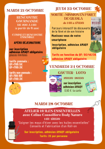 Sur inscription auprès du secrétariat, des activités gratuites pour certaines, payantes pour d’autres merci de vous référer au flyer pour avoir plus d’informations.