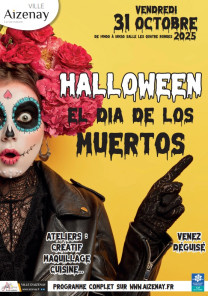 Cette année, le centre social du CCAS de la Ville d’Aizenay vous invite à fêter Halloween sur le thème "Dia de los muertos", le vendredi 31 octobre 2025 à la salle Les Quatre Ronde de 14h à 18h30.
