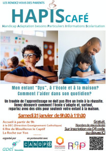 HAPIS CAFE le samedi 31 janvier Mon enfant "DYS", à l’école, à la maison? Comment l’aider dans son quotidien?