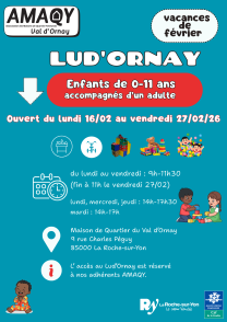 Venez passez un bon moment de jeux avec votre enfant dans la grande salle de maison de quartier du Val d’Ornay : espace de motricité, jeux de construction et jeux de plateau. Adhésion familiale AMAQY obligatoire ( auprès du secrétariat : 18€) avec accès gratuits toute l’année au Ludo . Pour des enfants de 0 à 11ans accompagnés de leurs parents ou grands-parents/ adultes.