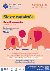 Rendez-vous à la médiathèque avec un oreiller, une couverture, un doudou.Installez-vous confortablement pour un moment de détente enfant-parent. Laissez-vous porter par les sons des instruments proposés par l’école de musique intercommunale. Enfant 4/6 ans accompagné d’un parent. Gratuit.