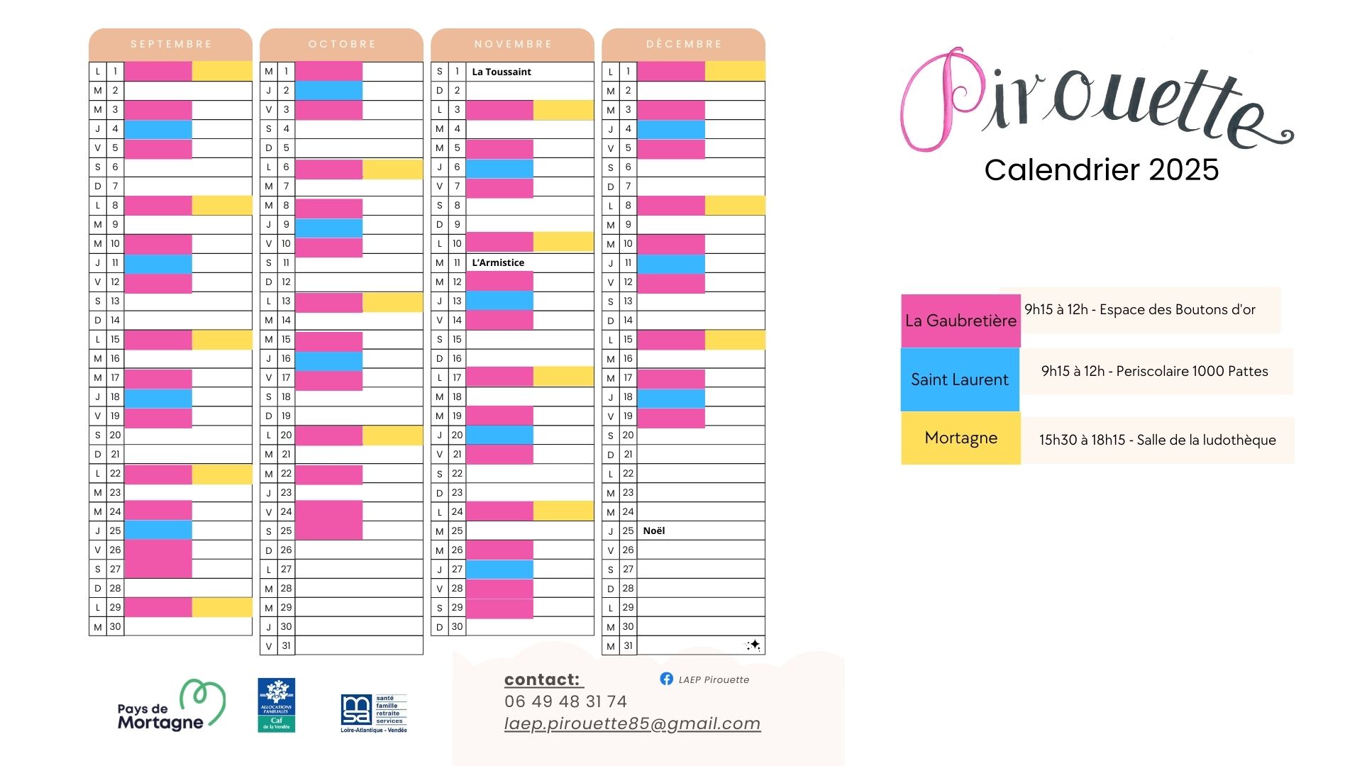 Lundi - mercredi- vendredi 9h15 - 12h et 1 samedi matin par mois La Gaubretière Lundi 15h30 - 18h15 Mortagne Jeudi 9h15 - 12h Saint Laurent